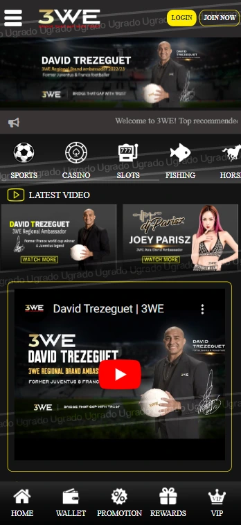 Branding plays a significant role in shaping the reputation and identity of an online casino. 3WE has strategically partnered with notable personalities to enhance its brand image. One such collaboration is with David Trezeguet, the former Juventus and France footballer, who serves as a brand ambassador for 3WE. This association with a renowned football figure adds credibility and appeal to the platform. Additionally, 3WE has partnered with Malaysia DJ, Joeyparisz, further expanding its reach and connecting with a diverse audience.