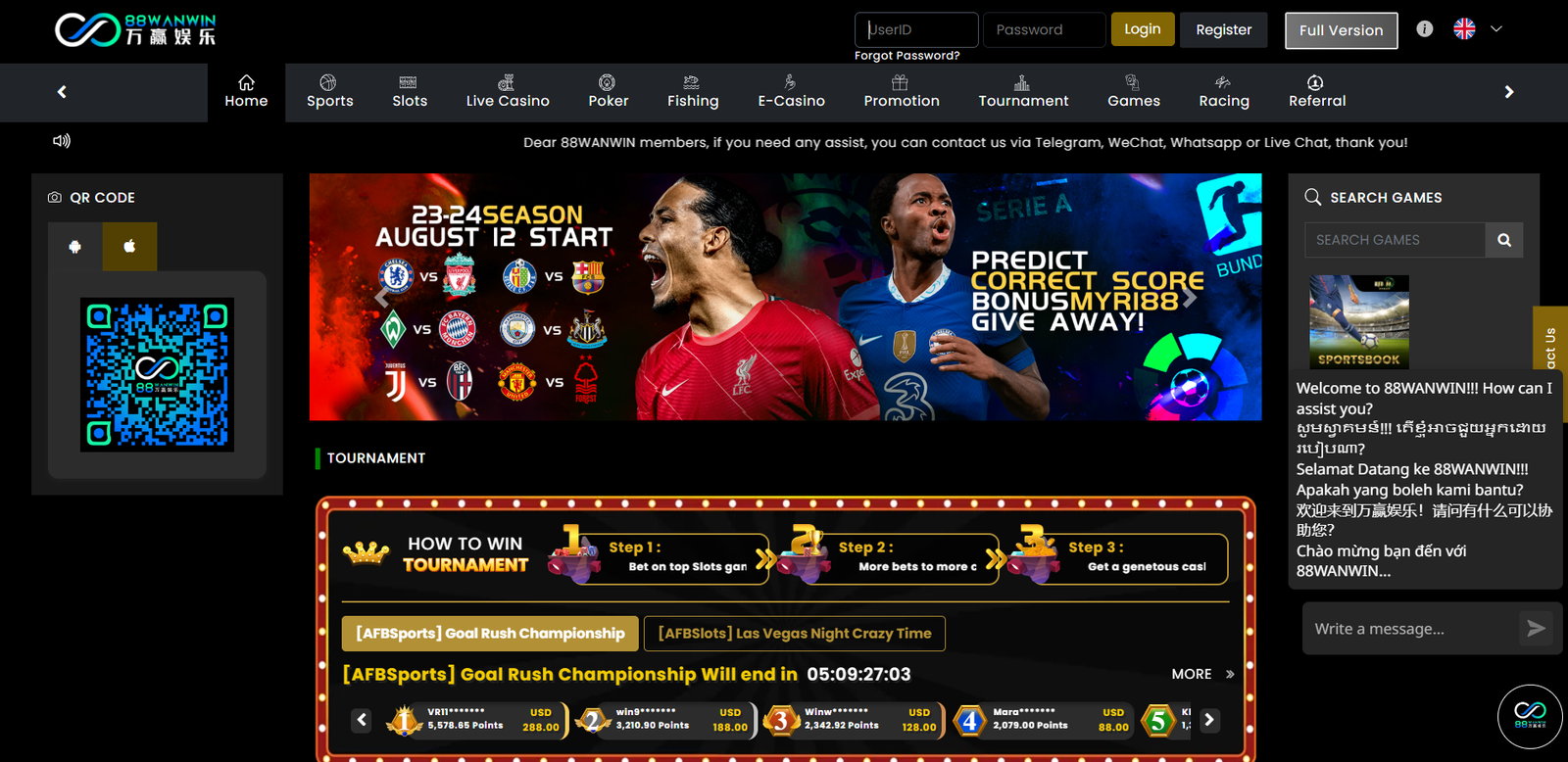 Messaging Apps: 88WANWIN extends its customer service to popular messaging apps like WhatsApp, WeChat, and Telegram, providing additional channels for users to reach out for help.