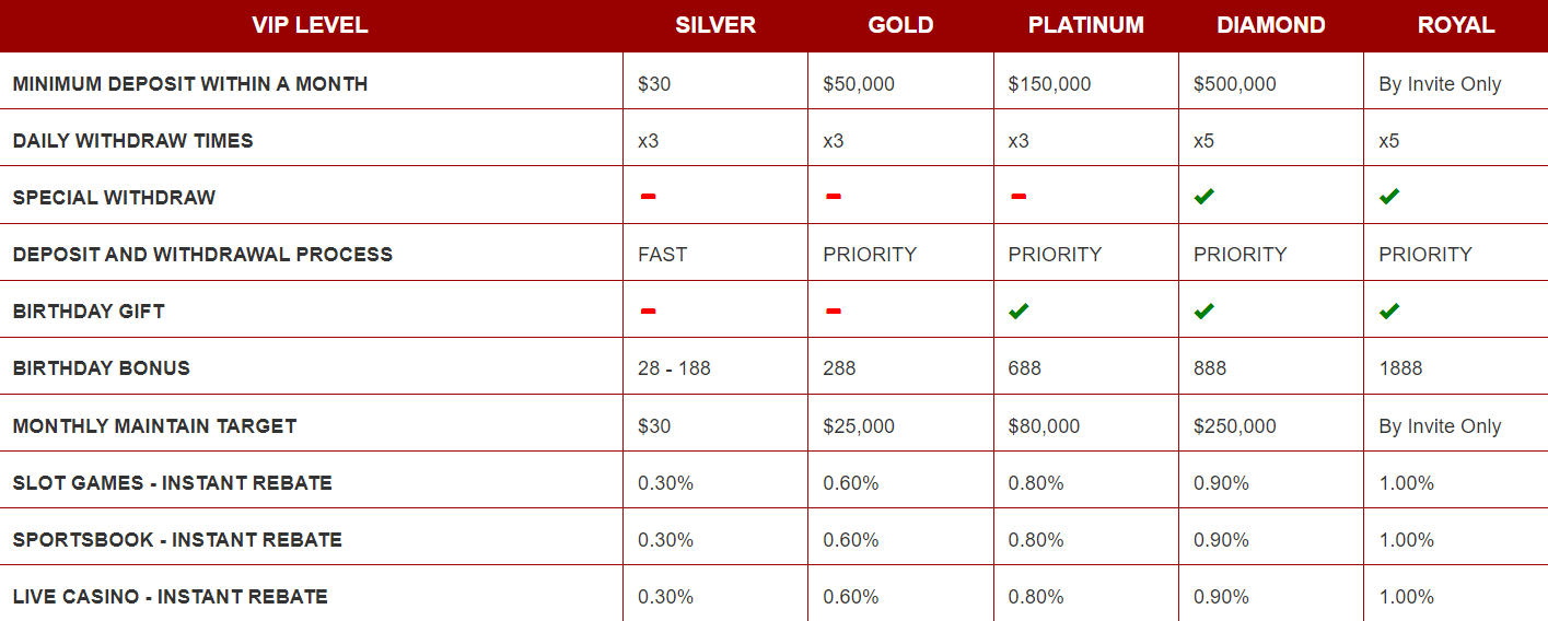 FIREWIN rewards its loyal players through a tiered VIP program. The program comprises tiers ranging from Silver to Royal, each offering progressively higher rewards. Players can expect benefits such as birthday gifts, bonuses, instant rebates, and more. As players ascend the ranks, the rewards become more generous, motivating players to stay engaged and loyal.
