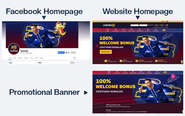 Another Cristiano Ronaldo visual has been found in the Uwin33’s Facebook posting promoting the sportsbook exclusive deal.