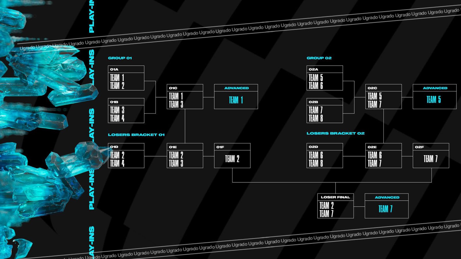 The eight teams in Play-In Stage will be drawn into two groups of four to compete in best-of-three, double elimination matches. The winners of each group and the winner of a last chance qualification match between the two lower bracket winners, will move on to the Bracket Stage to join the five qualified teams.