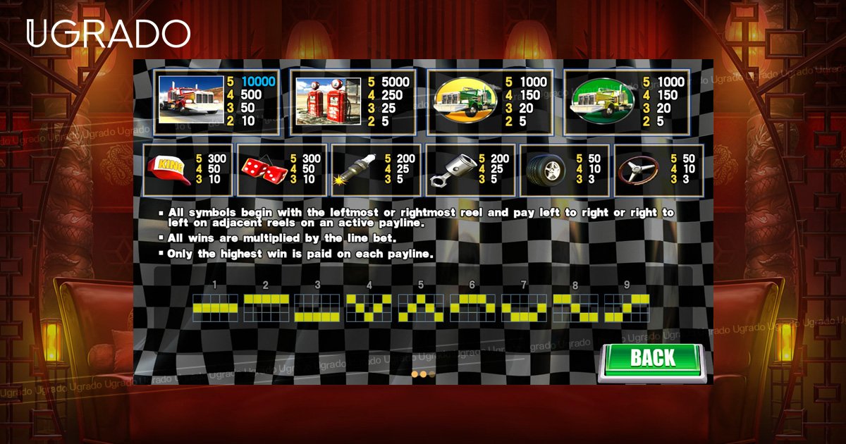 Highway Kings is a 5-reel, 3-row slot game that features a trucker theme. The symbols on the reels include a red truck, a green truck, a yellow truck, a gas pump, a tire, a spark plug, a piston, a steering wheel, and a pair of fuzzy dice. The game has 9 pay lines and offers players the chance to win big with its bonus feature.