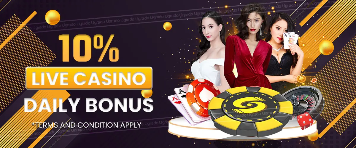 Enhance your live casino experience with a 10% bonus. Deposit a minimum of MYR 50, fulfill the x12 turnover requirement (Deposit + Bonus Amount), and explore the live game products to unlock withdrawal. For example, a deposit of MYR 100 with a MYR 10 bonus requires a winover of MYR 1320.