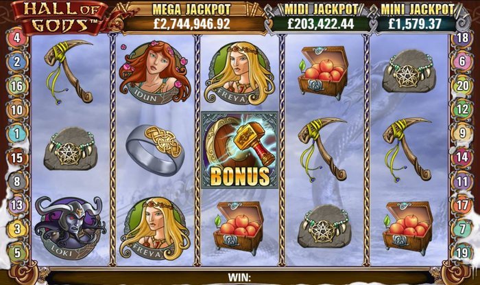 Hall of Gods by NetEnt is another popular online progressive slot games with the Norse mythology-themed and its massive amounts of jackpot pool. The Hall of Gods slot features five reels, three rows, and 20 adjustable paylines, along with god symbols like Odin, Thor, Loki, and mythical creatures like dragons and ravens. The game also offers three different jackpots, including Mini Jackpot, Midi Jackpot, and the Mega Jackpot that has reached over $8 million. The RTP of the game typically falls around 95% to 96%, which means a player expect to receive back around 95% to 96% of their total bets in average.