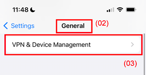 - Select “VPN & Device Management” for iOS 15 and above.